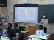 11月28日と12月3日に、5年生が栄養教諭を講師にお招きして、各クラスごとに食に関する指導訪問を行いました。自分の食べた朝食やその日の給食の献立から、栄養のバランスを調べました。また、よりよいバランスにするために、どうすればいいかも考えました。これからの食生活について、じっくり考える機会となりました。
