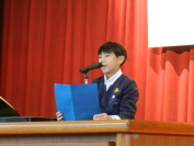 3学期の始業式が行われました。校長先生からは、「今年もよい年になるように、いろいろなことに挑戦していきましょう」という話がありました。その後の集会では、二人の代表児童が意見発表をしました。二人とも、今までのがんばりをもとに、3学期はどんなことにがんばりたいのか、自分の目標について堂々と伝えることができました。すてきな3学期にしていきましょう。