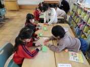 新一年生の入学説明会が行われました。体育館で保護者に説明をしている間に、1年生の教室で一日入学が行われました。1年生の子たちが年長さんを優しく迎え入れ、紙芝居を読んであげたり、一緒に折り紙をおったり、演奏をしたりしました。年長さんのことを考え、ていねいに接する1年生の姿に子どもたちの成長を感じました。