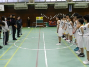 6年バスケットボール部がお別れ試合を行いました。教職員と楽しく試合をすることができました。その後、6年生から、部活動を続けることができたことへの感謝の気持ちが伝えられました。この気持ちを大切に、中学校でも頑張ってほしいです。