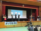 5年生が、総合的な学習の時間に取り組んできた米作りについて、学んだことを発表しました。お米についての問題や歴史、食べ方など、クラス毎にテーマを決めて、劇やクイズ形式にして4年生や保護者、お世話になった方々に伝えました。分かりやすく面白い発表ばかりで、多くの方に自分たちが学んだことを伝えることができました。