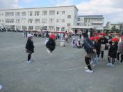 5時間目に、全校で長縄集会を行いました。各クラス2チームに分かれ、2チームの合計回数を記録とし、今まで練習をしてきました。練習の成果を出し、記録を更新しようと、どのクラスも応援したり励ましたりしながら、集中して長縄に取り組んでいました。クラスの気持ちが一つになり、笑顔いっぱいの時間でした。