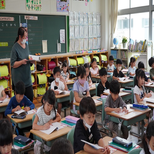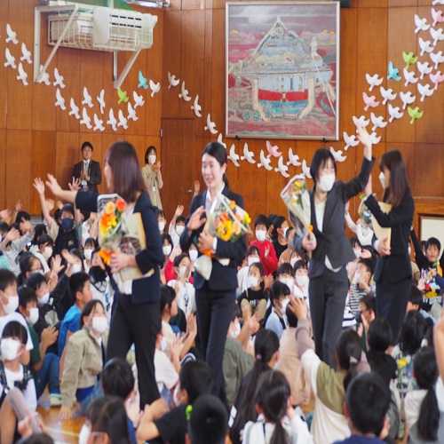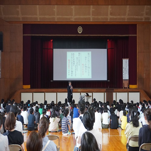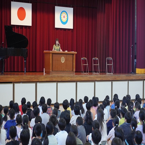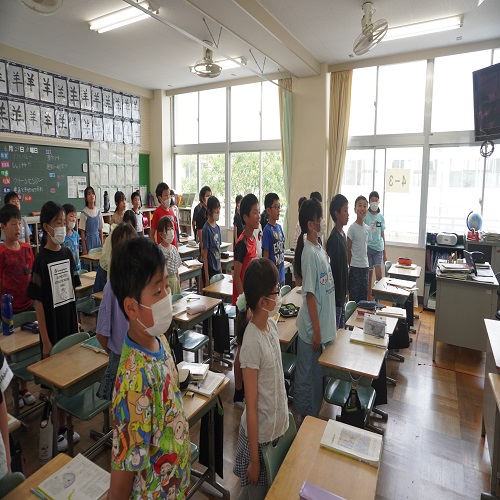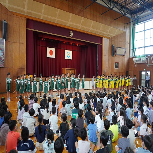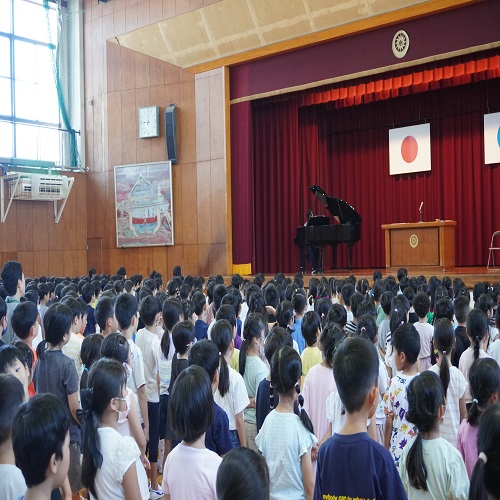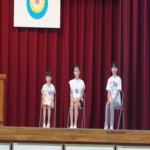 1学期の終業式を体育館で行いました。全校児童が歌う校歌が体育館に響き渡りました。校長先生からは1学期の日高っ子のがんばりをほめてもらいました。その後の全校集会では、表彰や3人の児童による意見発表、夏休みのくらしについての話がありました。最後まで姿勢よく話を聞く日高っ子の姿に感心しました。明日からの夏休みが有意義なものになることを願っています。 |