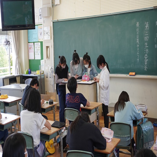 5時間目、6年生が学年きいてみタイムを開いていました。司会、記録などの進行を子どもたちだけで行い、テーマに基づいて、学年みんなで話し合いをしました。今後、全校でのきいてみタイムが予定されています。そこで、6年生がお手本となり、活躍してくれそうです。 |