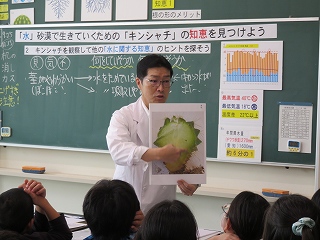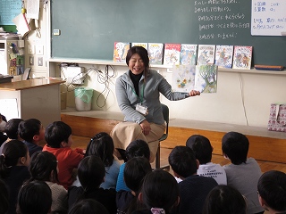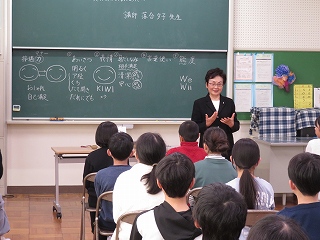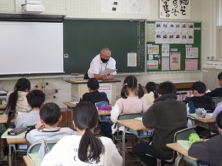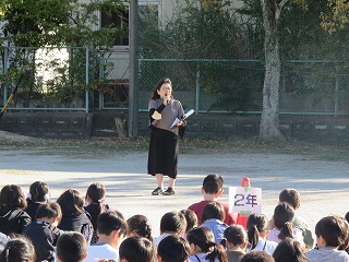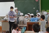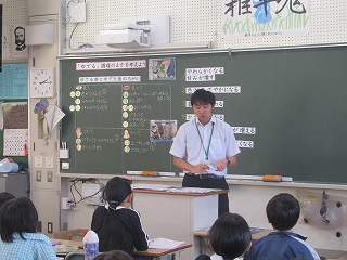 | 最初に、コンポストアドバイザーで環境再生医の山口さんから、「家庭の生ゴミが堆肥になること」「それが地球温暖化防止につながっていること」などを聞きました。そのあと、山口さんが自宅のコンポストでつくった堆肥を学年の教材園にまきました。これから育てる植物がどのように成長するのか楽しみですね。 |