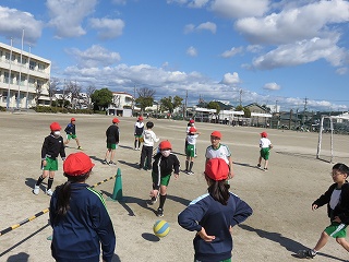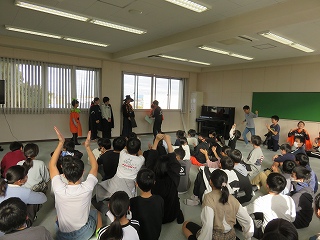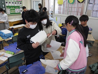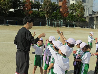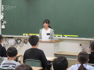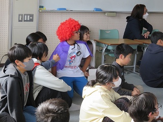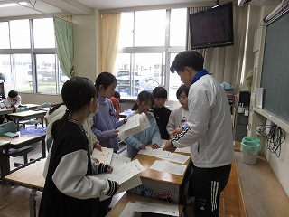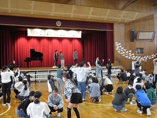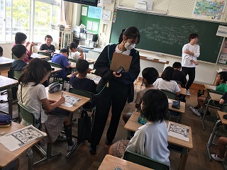 | 愛知教育大学の学生が、将来先生になるための修行をしています。先生の仕事を見たり、授業の中に入ったり、子どもたちと関わったりして、見識を深めています。図工室、体育館、教室、いろいろな場所で大活躍です。 |