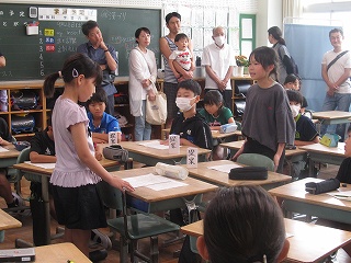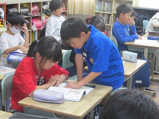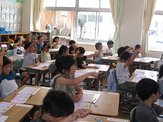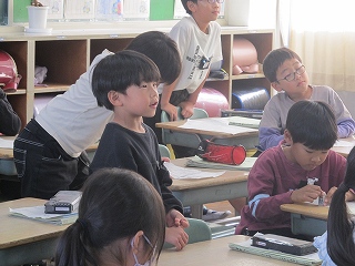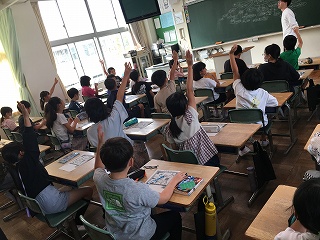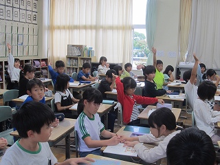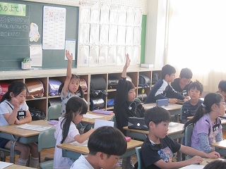 | 授業参観では、子どもたちはいつもよりちょっと緊張している様子でしたが、いつも通りに元気よく発表したり、グループで話し合ったりする姿がありました。5年生はみどりの学校説明会を行い、当日の持ち物やスケジュールなどを確認しました。仲間と協力しながら、団結力を深めてほしいです。 |