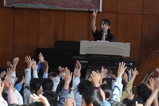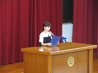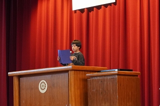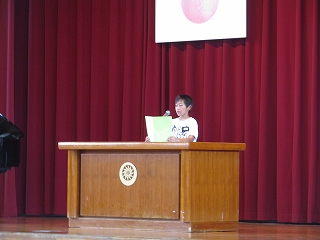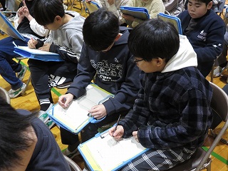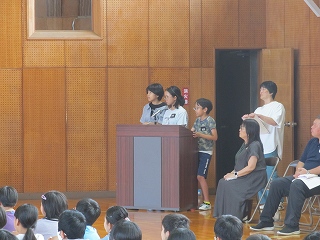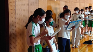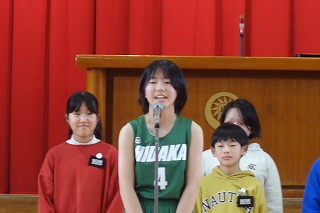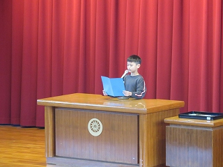 | 後期児童会役員選挙の立会演説会がありました。どの候補者も、自分の公約を分かりやすく発表することができました。推薦責任者の言葉も、大変心強かったと思います。そして、候補者の考えや意見を、真剣なまなざしで聞く日高っ子。聞く姿勢が、話しやすい雰囲気を生み出します。どんな結果であっても、選挙に立候補し、今日壇上に立ったことが立派です。よくがんばりました。 |
