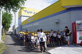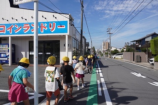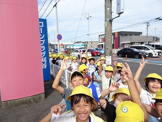 | 2年生が、学区探検に出かけています。生活科「見つけよう!わたしたちのきらきらさん」の学習で、サーティーワン、パンのかおり、マツモトキヨシを回りました。一人一人がたんけん隊となり、胸を躍らせながら、近隣の商業施設の様子を調査してきました。10月には、そこで働いている方にご協力いただき、インタビューをする予定です。今日の気付きを、自分の言葉で伝えられるとよいですね。 |