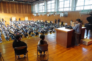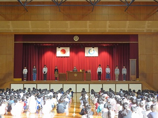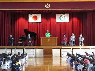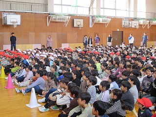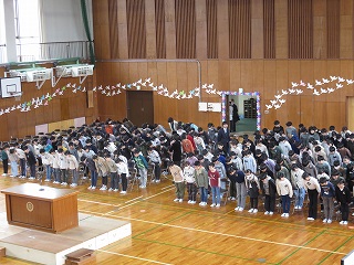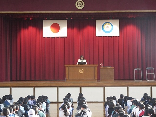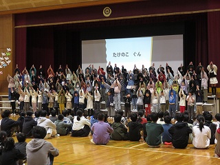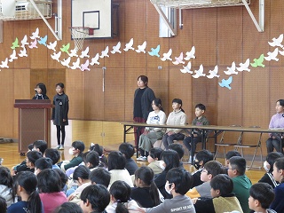 | 5時間目に離任式が行われました。それぞれの先生方から、思いのこもったお話を聞きました。真剣に話を聞いたり、体育館いっぱいに広がる校歌を歌ったりして、お世話になった先生方へ感謝の気持ちを表すことができました。先生方、いままで日高小学校のために、ありがとうございました。これからも見守ってください。 |