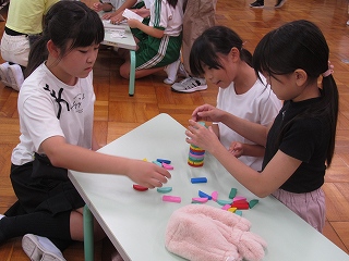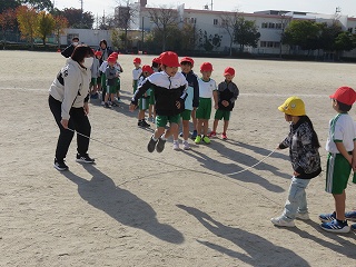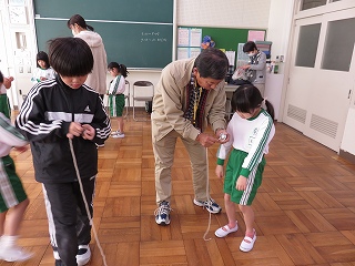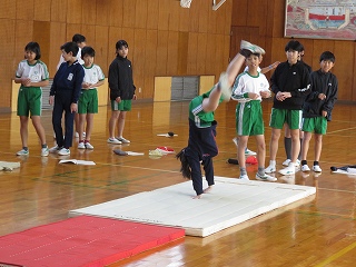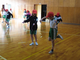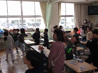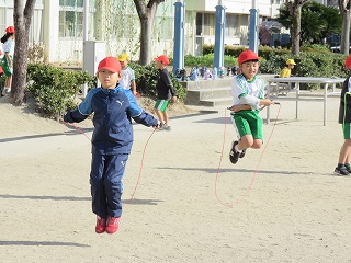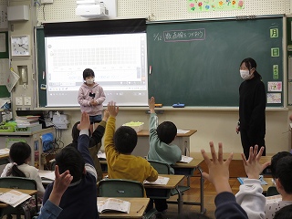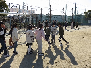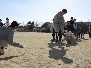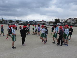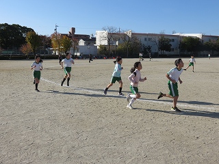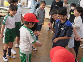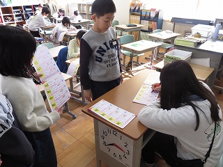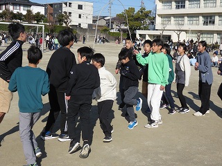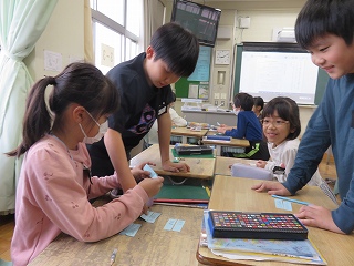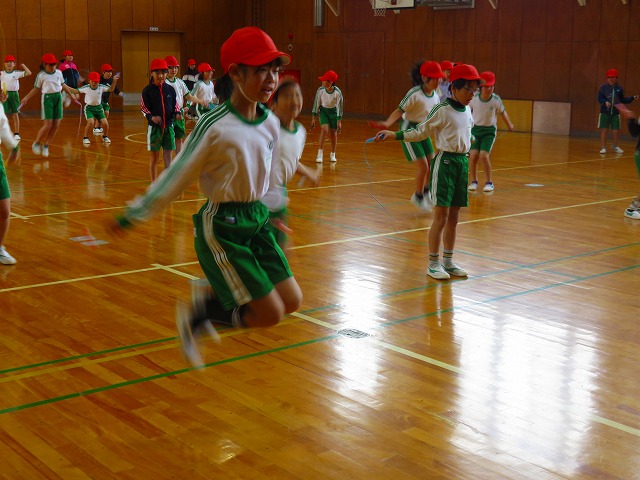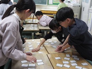 チームジャンプ大会が近づき、徐々にスピードが上がってきました。子どもたちだけではなく、先生も熱が入ります。校内では、百人一首をしているクラスがありました。耳を澄ませ、上の句、下の句が順に詠み上げられると、競うようにして札を取りにいっていました。百人一首も盛り上がっています。いずれも、4年生の様子です。
