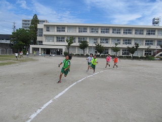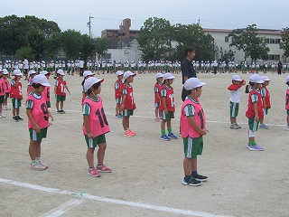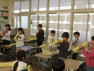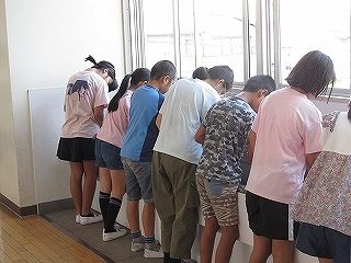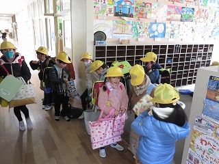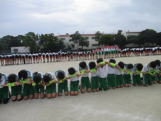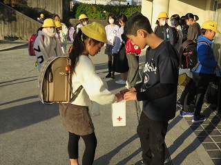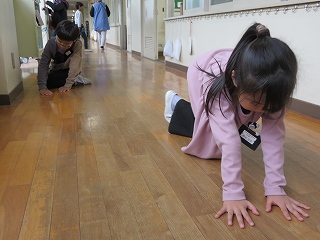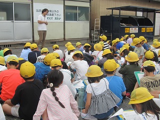 | 今日は避難訓練が行われました。運動場に避難した後は、津波警報が発令したことを想定し、校舎の3階へ避難しました。小学校に入学し初めて避難訓練を行う1年生も、その他の児童も、命を守るために真剣に取り組むことができました。 |