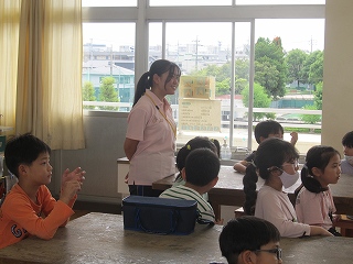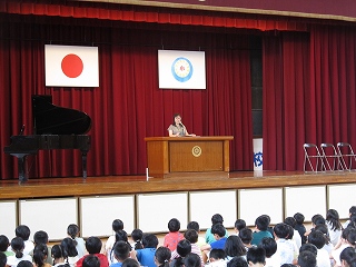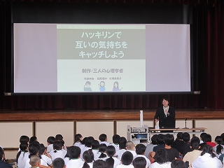 スクールカウンセラーの小山先生を講師としてお招きし、第1回学校保健委員会が行われました。「伝えよう、自分の気持ち 大切にしよう、自分の心と相手の心」をテーマに、自分と相手の相互を大切にした自己表現について考えました。保健委員の皆さんによる、ドラえもんを題材としたスライドショー劇は、児童が具体的に想像しやすいよう練られており、見事なものでした。