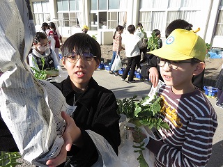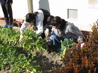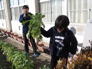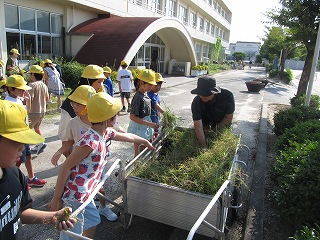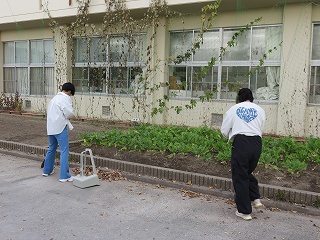 | 5年生が教材園に堆肥(たいひ)をまきました。 |