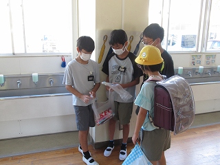 | 早朝から、JRC委員や児童会役員・学級代表を中心に、活発な動きが見られます。自分の立場や役割に責任をもち、一生懸命取り組んでくれることに、感謝、感謝です。当たり前のことを当たり前にこなすことは、実は難しいことです。JRC委員の呼びかけや各ご家庭のご協力のおかげで、アカペ牛の回収率が上がっています。 |