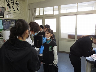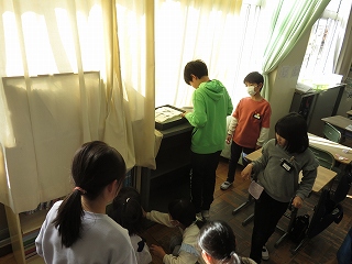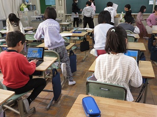 4年生が視力検査のあとに、学級で「長時間のネット利用」について話し合いました。子どもたちはどのようにスマホなどを使えばよいのかを考えて、「使う時間を決めればよい」「アプリの通知をオフにする」「メッセージがきても、『今から寝るからまたね』と返事をする」などの意見がありました。今日の話し合ったことを生かして、ネットを上手に使ってほしいと思います。 |
