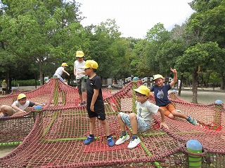 | 3年の総合的な学習として、学区の公園へ探検しました。公園の中にある遊具や設備を見て、工夫されていることや疑問などをたくさん見つけることができました。これからさらに学区を探検していきます。 |