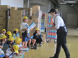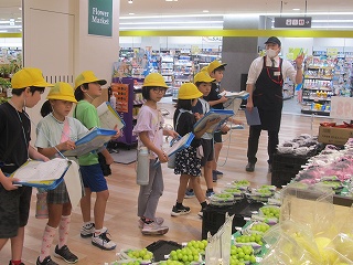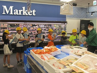 | スーパーマーケットバローに行き、店内、業務用冷蔵庫、バックヤードを見学させていただきました。売り場では、鍋や天ぷらなど、献立を連想しやすいように、品物が配置されているというお話が印象的でした。バローまでの道中では、交通ルールを守りながら、店内では、一般のお客さんに配慮しながら、意欲的に学習することができました。 |