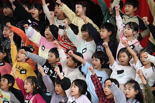 今年度の運動会のスローガンは「燃やせ情熱!みんなで目指せチャンピオン」です。それを達成するために、みんなで力を合わせて練習に取り組んできました。本番では、練習したことをすべて出し切って、日高っ子のみんなが「チャンピオン」となることを期待しています |
