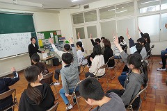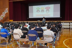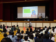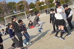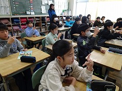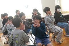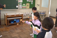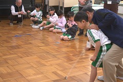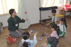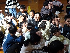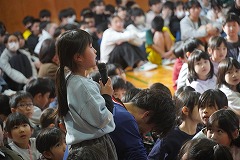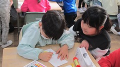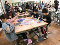 4月から新1年生になる日高幼児園のみんなに、5年生が日高小学校の1日を紹介したり、クイズやゲームをしたりしました。笑顔でゲームを楽しみ、ほほえましい光景をたくさん見ることができました。今日の交流が4月からの楽しい学校生活につながってくれるとうれしいです。