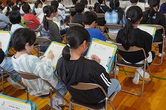 校内で書き初め会がありました。学年ごとで決められた課題に沿って、1〜2年生は硬筆、3〜6年生は毛筆で、文章や文字を書きました。緊張感が漂う中で、姿勢を正し、落ち着いて取り組むことができました。気持ち新たに、よい1年のスタートが切れそうですね。