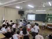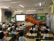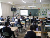 | 学校保健委員会がありました。3年生を対象とした「おなか元気教室」でした。ヤクルト東海の方に来校していただき、健康に過ごすために、日々の生活で気をつけること、早寝・早起き・何でも食べる・体を動かす・うんちをする・乳酸飲料を飲むなど健康に気をつけることの話を聞きました。消化器について学んだ時に小腸の長さが6mもあることを知って驚いていました。 |