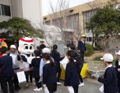 昼放課の時間を使って、ブラスバンド部が熱心に練習をしてきた曲を披露しました。休み時間にもかかわらず、たくさんの子どもたちが演奏を聴きにかけつけました。バンドフェスティバルでも披露した「RPG」と「宝島」を演奏しました。先生たちも加わって、演奏する子どももたちも聞いている子どもたちもノリノリでした。ブラスバンド部の皆さん、すてきな演奏をありがとうございました。