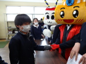 ひがりん・あがりんの握手会が開催されました。握手をしているのは計画委員会企画の「東刈谷っ子ビンゴ」に挑戦した子どもたちです。「元気にあいさつできましたか」「机の中の整とんをしましょう」などのミッションを達成して握手券を手に入れていました。どの子もうれしそうに握手をしていました。