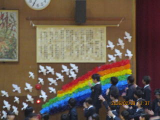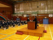 | 3学期の始業式がありました。1~6年生までとても静かにそろって体育館に入場することができました。校長先生からは、チューリップ農家さんの球根のお話から「苦手なことから目をそらさずがんばろう。好きなことも、より高いレベルでがんばろう」と、お話がありました。学校集会では、2名の先生からメッセージがありました。「がんばっていればきっとよいことがある」「記念式典でみんなが歌う愛唱歌が楽しみです」トロンボーンで「花は咲く」の演奏もしてくださいました。3学期も楽しみです。 |