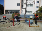 親父の会主催の「サンキュースクール」が開催されました。総勢10組の家族が参加をしてくれました。あたたかい日差しの中、みんなで力を合わせ、運動場や学校周りの側溝掃除をしました。手伝ってくれた子どもたちも、スコップを使って泥を掻き出したり、重たい土を運んだりして大活躍でした。おかげで、側溝が見違えるようにきれいになりました。休憩時間にはあたたかい飲み物で疲れを癒やしました。参加してくださった皆さん、ありがとうございました。