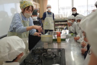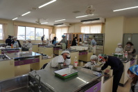 特別支援学級では、オレンジジュースとリンゴジュースを使ってゼリー作りに挑戦しました。ゼラチンではなくアガーを使って固めたので、とてもまろやかに仕上がりました。作ったゼリーは、一日冷蔵校で冷やしてから、給食の時間においしくいただきました。ぜひ、家庭でも作ってみてほしいです。