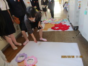 1年生は「6年生を送る会」でありがとうの花を使って歌のプレゼントをしました。一生懸命作った花を卒業式の日にも見てほしいという願いものと、卒業式に飾る掲示を作っています。1年生の子どもたちは場所や向きを考えて貼っていました。紙を汚さないように上靴を脱いで作業する姿が微笑ましかったです。6年生の皆さんはきっと喜んでくれると思います。
