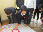来年度、東刈谷小学校に入学する予定の園児たちが1日入学にやってきました。保護者は体育館で学校生活についての説明を聞き、園児たちは1年生の児童と過ごしました。1年生実行委員の子たちが挨拶をした後、自分たちで作ったおもちゃで遊んでもらいました。最後に、アサガオの種が入ったプレゼントを渡しました。園児たちはとてもうれしそうでした。4月、一緒に学校生活を送れる日を楽しみに待っています。