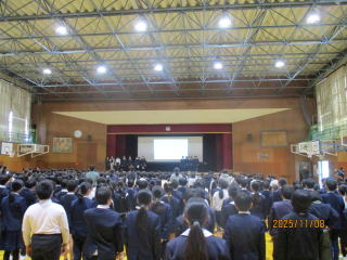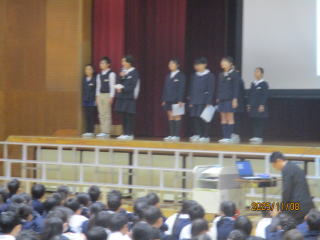 終業式の後に行われた全校集会で、計画委員がアルミ缶集めを呼びかける劇を行いました。迫真の演技力で、アルミ缶を持参する意識がとても高まりました。 |