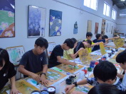 この週末に元刈谷市民館で第27回元刈谷文化展が開催されました。本校の1・3・5年生の図画工作の作品も掲示されていました。水書用紙が用意されているコーナーでは、多くの子どもたちが筆を持って、楽しんでいました。