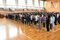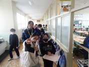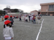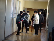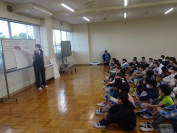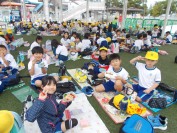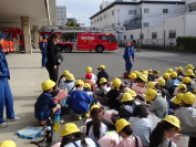 火災を想定した避難訓練を行いました。教室から外へ出るまで、ハンカチで口を覆い、階段や廊下も整然と歩くなど、「お・は・し・も」の4原則をしっかり守って、安全に素早く避難することができました。運動場へ出てからも静かに待つことができ立派でした。その後、引き渡し訓練を想定して整列し直す練習をしました。