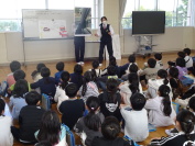 4年生が総合的な学習の授業の一環で、SDGsと新聞の書き方を学ぶ授業を行いました。刈谷市に本社のある三和油化工業と読売新聞社の方が講師として、出前授業を行ってくださいました。工場から出る廃油をきれいに浄化して、各企業に戻していることや、浄化するしくみの蒸留の実験など、SDGsにつながる大事なことを分かりやすく教えてくださいました。また、新聞の書き方では、プロの新聞記者でも気をつけていることを教えてもらったので、このあとの新聞づくりに生かしていきます。