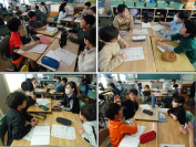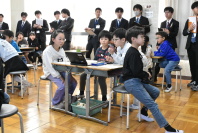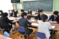 昨日の授業後、先生たちの研修会を行いました。愛知教育大学の大鹿教授を招いて、協働学習についての勉強会です。各グループごとに役割を決め、教育課題や学校をよりよくする方策について話し合い、発表する形式の研修でした。実際に体験することで、協働学習のよさや意義を実感することができました。これからの授業に生かしていきたいです。