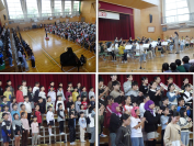 学習発表会を行い、午前は児童が互いの発表を見合い、午後は保護者の方々に見ていただきました。どの学年も、この発表会に向けて熱心に練習してきたことがわかる発表でした。低学年は元気な振付で明るく伸びやかな歌声を、高学年は美しいハーモニーを響かせることができました。午後からは、子どもたちが一生懸命がんばってきた成果に、保護者の皆さんからも大きな拍手をいただき、大きな達成感を感じられたことと思います。
