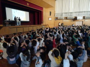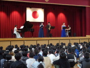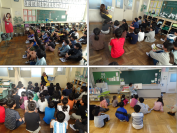刈谷音楽協会所属のプロの演奏者の方をお招きして訪問コンサートが行われ、4,5,6年生が参加しました。電子オルガン・ピアノ・ソプラノ・フルート・サクソフォンと、4つの楽器と歌声で、8曲の演奏を聴くプログラムです。最後の「音楽は友だち」の曲は、演奏に合わせてみんなで歌い、素敵な合唱になりました。プロの演奏者の演奏を間近で聴いたのですが、子どもたちの聴くマナーがとてもよかったとお褒めの言葉をいただきました。270名で幸せな時間を過ごしました。