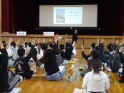 1時間目に、児童会主催の人権集会を体育館で行いました。○×で答える人権クイズや図書館司書の茶野先生による「すきなこと、にがてなこと」の読み聞かせ、人権カルタからのクイズで人権について学びました。どの子も楽しく参加できました。児童会の子が人権標語の見本を見せてくれたので、その後、教室に戻って、人権標語を考えました。人権標語の優秀作品は、来年度の衣浦小学校カレンダーに載る予定です。