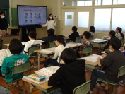 若手教員の授業研究会として、2年雪組で道徳の研究授業を行いました。たくさんの先生が見守る中、子どもたちは「友だちと仲よくしていくために大切なこと」を話し合いました。