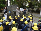 衣浦小学校は歴史的にとても価値のあるところに立地しています。そこで元刈谷の歴史の一部を実際に歩いて回りながら、6年生に紹介してもらう地域歴史探検が今年も行われました。講師は、元刈谷歴史研究会のみなさんです。最初の楞厳寺では、徳川家康の母である於大の方の菩提寺であることを聞き、宝物館の見学をさせてもらいました。刈谷城より前に築城された刈谷古城跡を見て、刈谷の始まりの地は元刈谷なんだと、なんだか誇らしくなりました。最後の本刈谷貝塚では、3000年前の貝殻を見つけようと頑張っていました。元刈谷歴史研究会のみなさん、有意義な時間をありがとうございました。