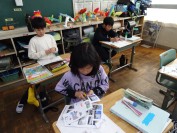 1年生がいつもお世話になっている6年生にお礼を伝えるため、自分たちが育てたサツマイモをふかし芋にして、プレゼントしました。本当は一緒に試食する予定でしたが、インフルエンザが流行しているので、6年生の教室へ持って行きました。6年生からはお返しに、折り紙で作ったペンダントやブローチなど、素敵な贈り物をもらい、1年生は嬉しそうでした。サツマイモは、給食の時間においしくいただきました。