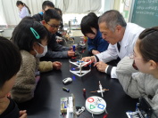 デンソーから講師の先生が来校され、理科の電磁石の授業を行ってくださいました。電磁石がモーターになるしくみを知り、興味津々に先生の話を聞いていました。モーターのおもちゃで遊んだり、いろいろな実験もやったりして、理科が楽しいと思う児童が増えたようです。