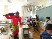 今日は節分です。衣浦小学校にも赤鬼と青鬼が現れました。悲鳴を上げて逃げ惑う子どもたちもいれば、新聞紙で作った"豆"を投げつけ立ち向かう子もいました。