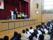 インフルエンザで延期になっていたおはなし会が、2時間目に3年生、3時間目に4年生を対象に、なかよしルームで行われました。大型絵本の読み聞かせや、図書館司書の茶野先生によるブックトーク、ペープサートでの本格的な人形劇など、あっという間の45分間でした。図書レンジャーのみなさん、ありがとうございました。