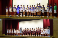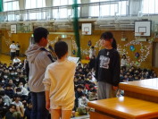 本日の1時間目に学校集会で表彰が行われ、たくさんの児童が表彰を受けました。児童会からは人権標語の入賞者に、児童会長より表彰状を授与しました。その後、1〜4年生が体育館に残り、お別れ式の練習をしました。歌の練習をしていると、みるみると歌声が美しく大きくなります。当日、6年生に尊敬や感謝の気持ちが伝わるといいいですね。