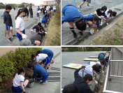 卒業前に自分たちの手で学校をきれいにしようと、6年生全員が校庭の側溝掃除をしてくれました。「うわ、くさい」と言いながらも、最後までしっかりやってくれました。ありがとう!6年生