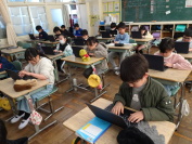 水曜日の衣浦っ子タイムは、タイピング練習かトークタイムを行っています。今日の4年花組は「無人島に一つだけ持っていくなら何にする?」というテーマで話しました。紹介タイム、説明タイムでは、どの班も盛り上がっており、笑顔のトークタイムでした。